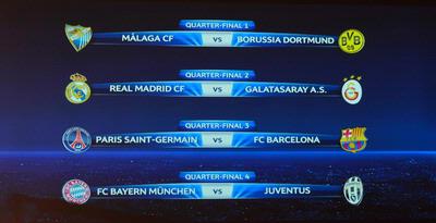 Hasil undian perempat final Liga Champions 2012-2013, di Nyon, Swiss, Jumat (15/3/2013).