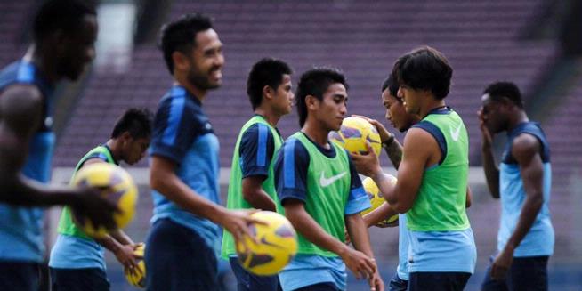 Pemain tim nasional Indonesia berlatih di Stadion Utama Gelora Bung Karno, Jakarta, Rabu (20/3/2013). Timnas Indonesia dibawah pelatih sementara, Rahmad Darmawan akan menghadapi Arab Saudi pada 23 Maret mendatang pada laga Pra-Piala Asia 2015.